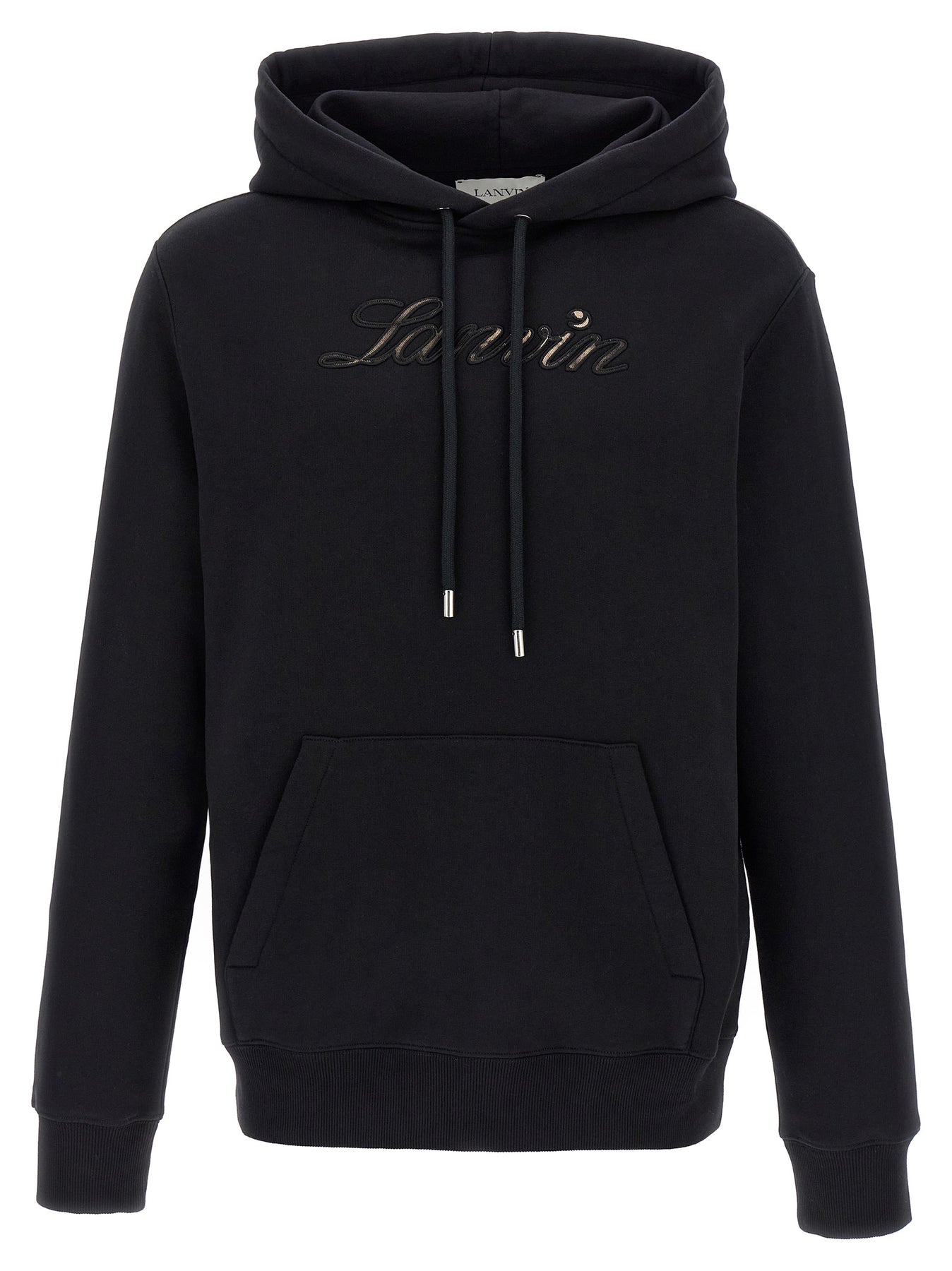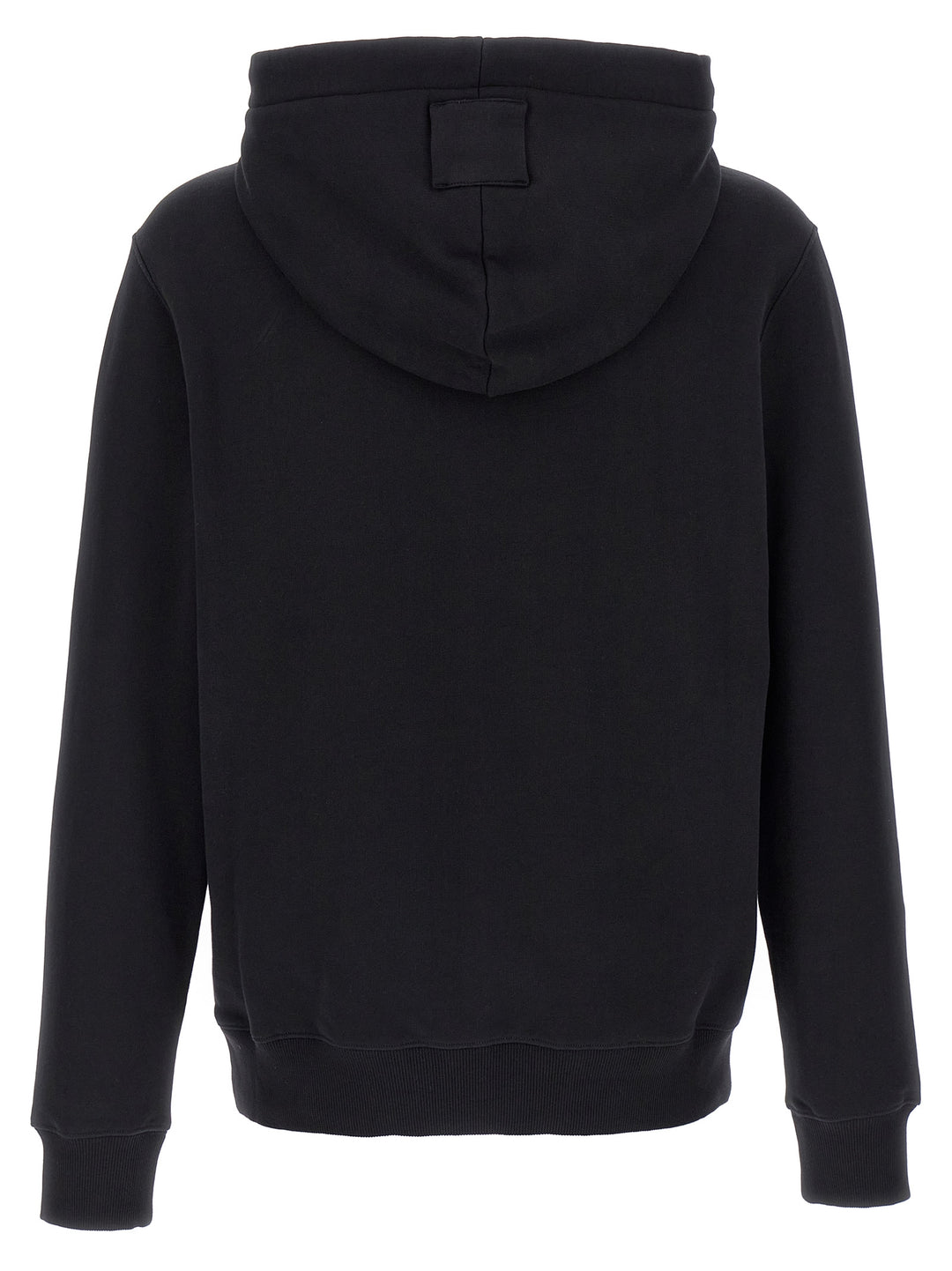 Fleece cotton hoodie with front logo embroidery, kangaroo pocket, long cuffed sleeves.